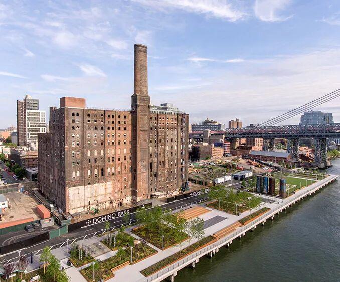 Two Trees 管理公司和詹姆斯·科纳景观设计公司建立了合作关系。詹姆斯·科纳是高线公园的主创设计师。多米诺公园是威廉斯堡大桥北边长度为四分之一英里的公共公园,这个公园是为了庆祝纽约最具代表性的工业滨水区而建。