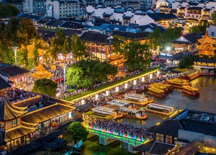 夫子庙步行街位于南京市夫子庙—秦淮风光带风景名胜区核心地带,主街长度1284米,总占地面积约36万平方米,总商业面积50.64万平方米。以秦淮文化为母体,沉浸式体验为核心,布局创意手工、品牌文创、秦淮非遗为主题业态场景,打造具有南京自身特色的沉浸式商业街。