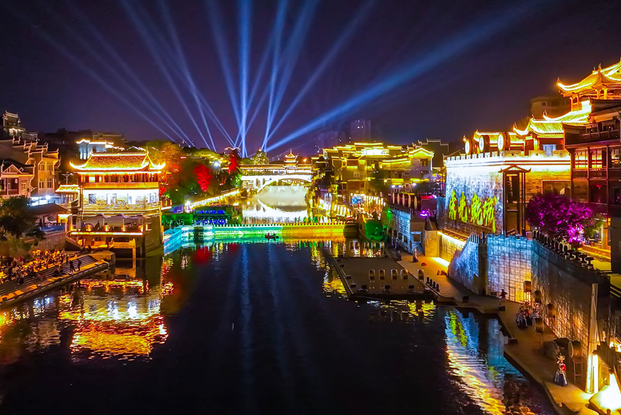 乾州古城旅游休闲街区位于湖南省湘西土家族苗族自治州吉首市,以乾州古城为依托,主要包括乾城街、乾城美食街、湘西不夜城、十里溶江等区域,占地面积 52000 平方米。