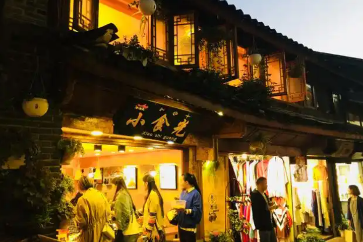 在业态方面,四方街核心区(约2000㎡)以非遗工坊、银器店、东巴纸坊为主,外围街巷布局客栈、酒吧、咖啡馆,形成“文化体验-休闲消费”的闭环。同时,四方街大力发展夜经济,引入livehouse、沉浸式剧场等业态,夜间营业额占比达60%。