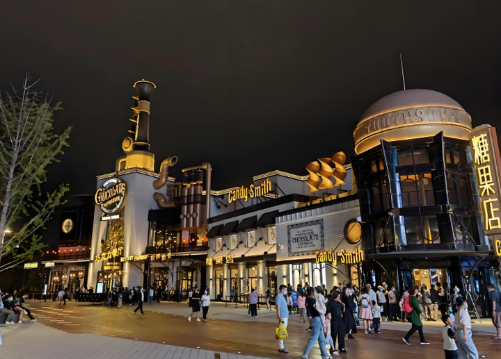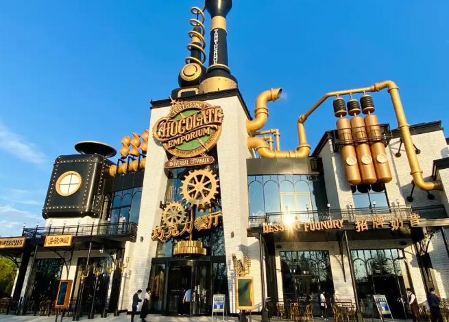 街道动线设计遵循“三幕式”体验原则:入口处通过“龙鳞灯”引导游客进入故事情境,中段以环球影城商店的宇宙光影强化IP认知,终点用巧克力工厂的蒸汽朋克风格完成高潮体验。餐饮区采用“一店一世界”策略,如酷巧餐厅通过机械齿轮装置与机器人NPC互动,将等位时间转化为体验环节,顾客停留时长延长至传统餐厅的2.3倍。