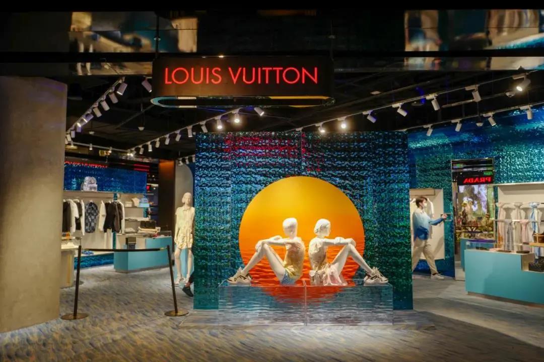 作为购物中心,必然少不了选品、带货、卖货。在品牌选择方面,SKP-S和SKP高度重合,主打一线大牌,但在门店的形象设计上却完全不同。店内设计百花齐放、争奇斗艳,让人眼花缭乱、惊喜连连。以往让人高不可攀,对形象输出有严苛标准的顶级大牌完全换装,PRADA、LOUIS VUITTON、GUCCI、BURBERRY……纷纷玩起了艺术创作:超乎想象的色调,各种元素的混搭,统一的黑底红字LED屏充当门头……这是在全世界任何商场都看不到的景象。