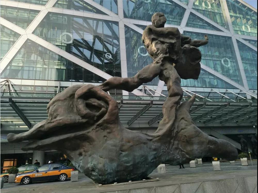 相对其他商场来说,侨福芳草地更像一个超大型的艺术品。还没进入商场,你就能在场外看到各种艺术作品。位于C位的是达利的巨型雕塑作品《骑海豚的人》。