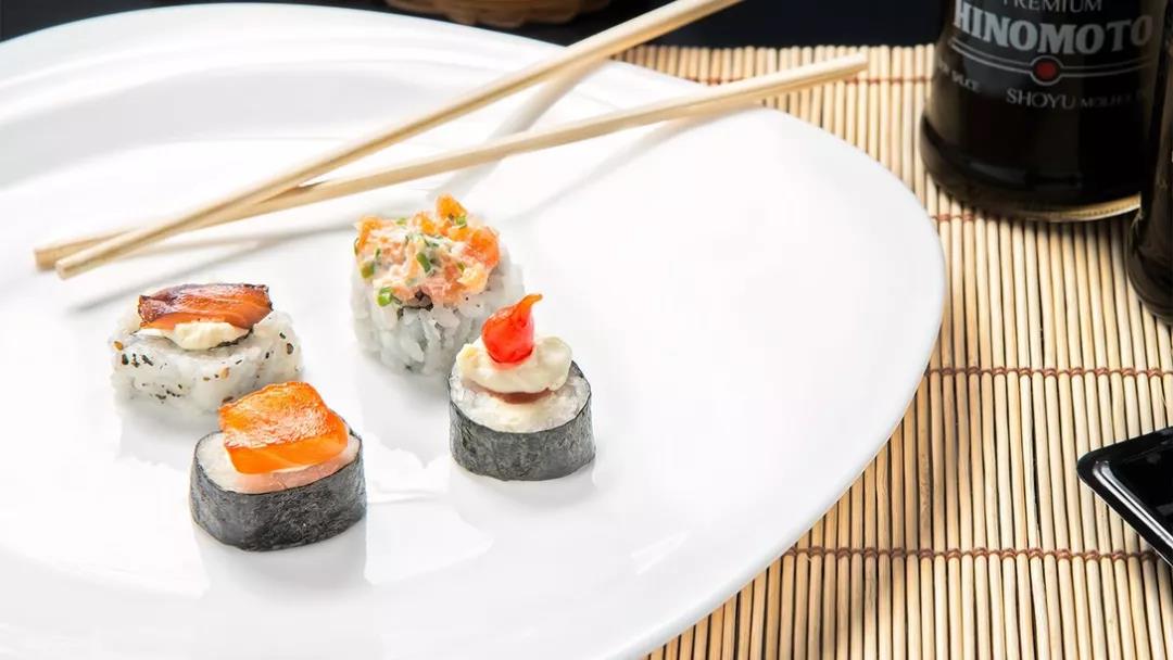 给精致小巧的寿司料理搭配表情,活脱脱一个可爱至极的表情包诞生啦。