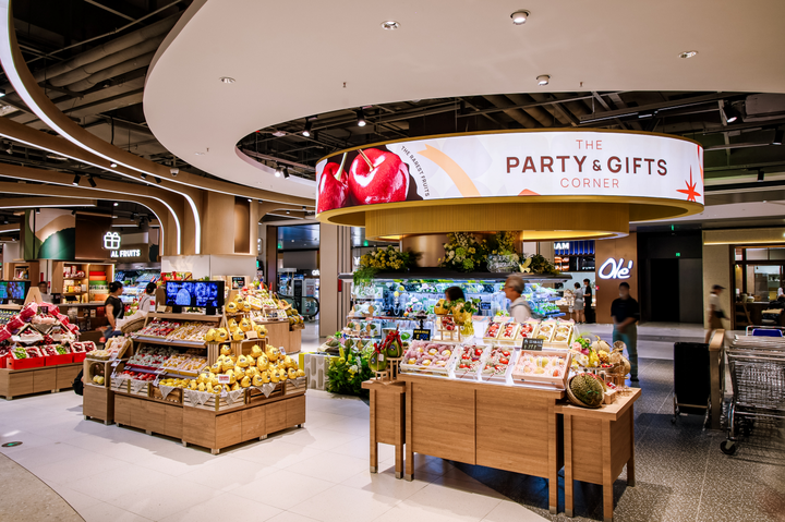 Olé灵感驿站概念店创新采用“无边界”设计理念颠覆传统零售空间,以“美食、烘焙咖啡、礼品、健康、休闲”五大灵感驿站为湾区居民打开全新生活想象。作为门店人流最密集的区域之一,Olé 专业买手团队打造的美食驿站,以 “高颜值餐饮+开放式现场加工” 的超市餐饮化场景,为消费者提供沉浸式的美食交流空间,在现制现售的互动环境中,将购物行为延伸成了日常生活的一部分。