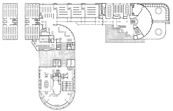 北九州市立中央图书馆,一层平面图©Isozaki Arata