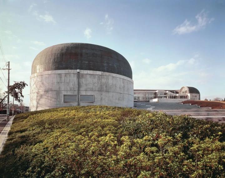 日本福冈的北九州市立中央图书馆的灵感来自 Étienne-Louis Boullée 为法国国家图书馆(1785)的重建方案,矶崎新用预制混凝土材料实现了对新古典主义拱形天花板的现代诠释。