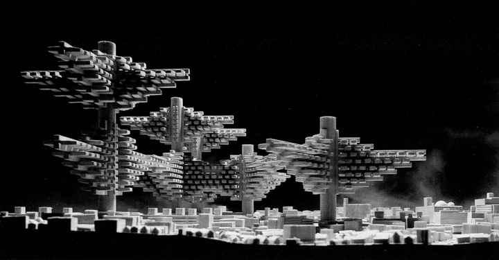 天空之城概念草图©矶崎新的《孵化过程》