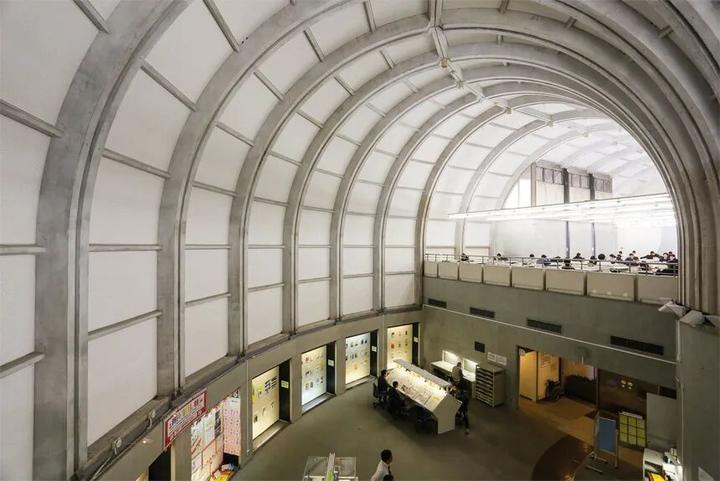 矶崎新对曲线的向往,在北九州市立中央图书馆体现的淋漓尽致。进入室内,拱券不再是古典主义独有的特征,在拱券弯转的那一刻,呈现出仿若中世纪哥特教堂叠柱一般的形状,矶崎新重新解读了它。