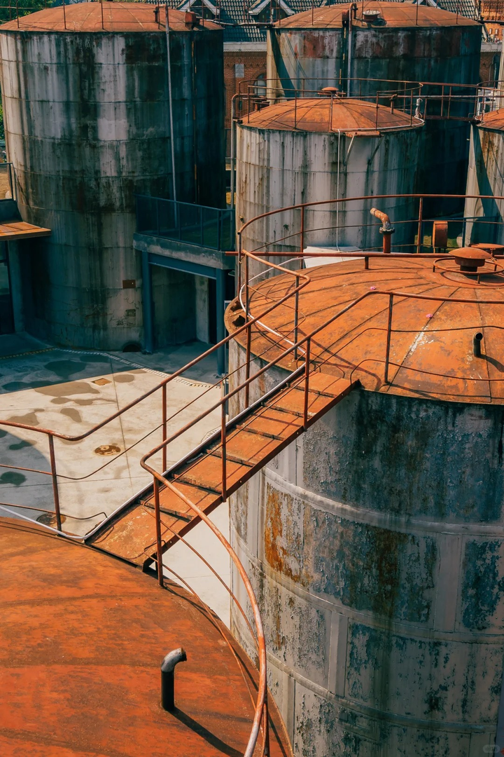斑驳的油罐外壁与历史砖墙得以完整保留,通过建筑拆改、空间重组与亮化设计,形成工业粗粝感与现代审美并存的独特空间体验。这种改造方式既延续了场地历史记忆,又创造了差异化的空间价值。
