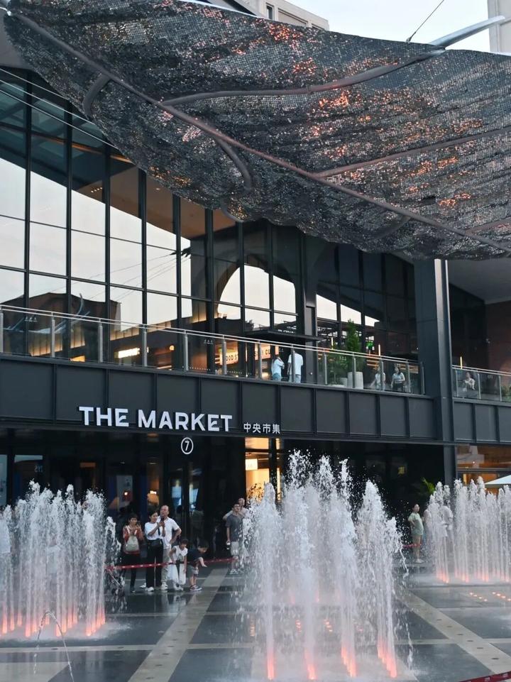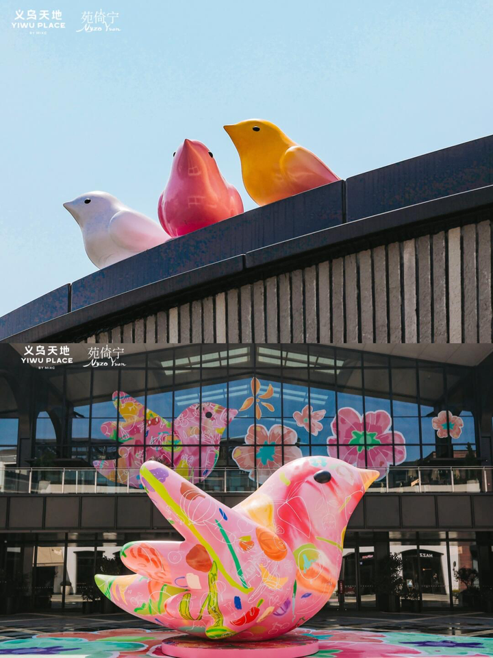 其中,核心建筑THE MARKET中央市集使用高挑空,内部格局凸显了义乌标志性的小商品市场特性,质感细节尽显高端格调。开业期间曾根据义乌独有的城市精神“鸡毛换糖”,以羽毛和糖纸的形态打造的“爱羽”、“甜蜜”艺术装置,以及复古艺术红砖墙,也充满国际范。