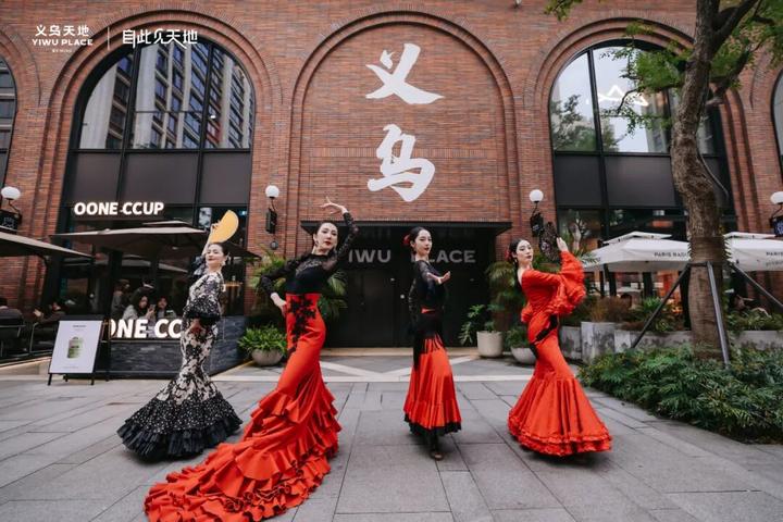 “生命万岁viva la vida”,带来专业热烈的西班牙舞蹈,成城中热议的“高光事件”。一周年庆“义乌国际文化节”引入汁原味异国文化,10米牛仔帽、凌空指环、铜制风铃等装置搭配巴西战舞、伊斯坦布尔转转舞等展演,叠加“国际文化市集”,活动当天客流达8万人次。