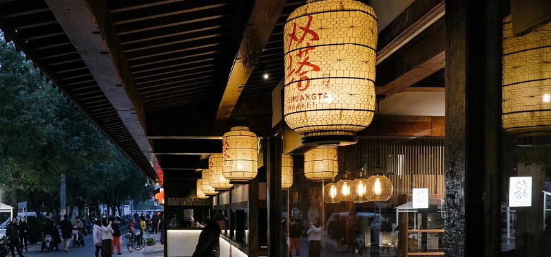 双塔市集的沿街铺面则是两家极具复古味道的茶馆、小酒馆。缝纫和配钥匙的小店在设计上,也充满了文艺气息。